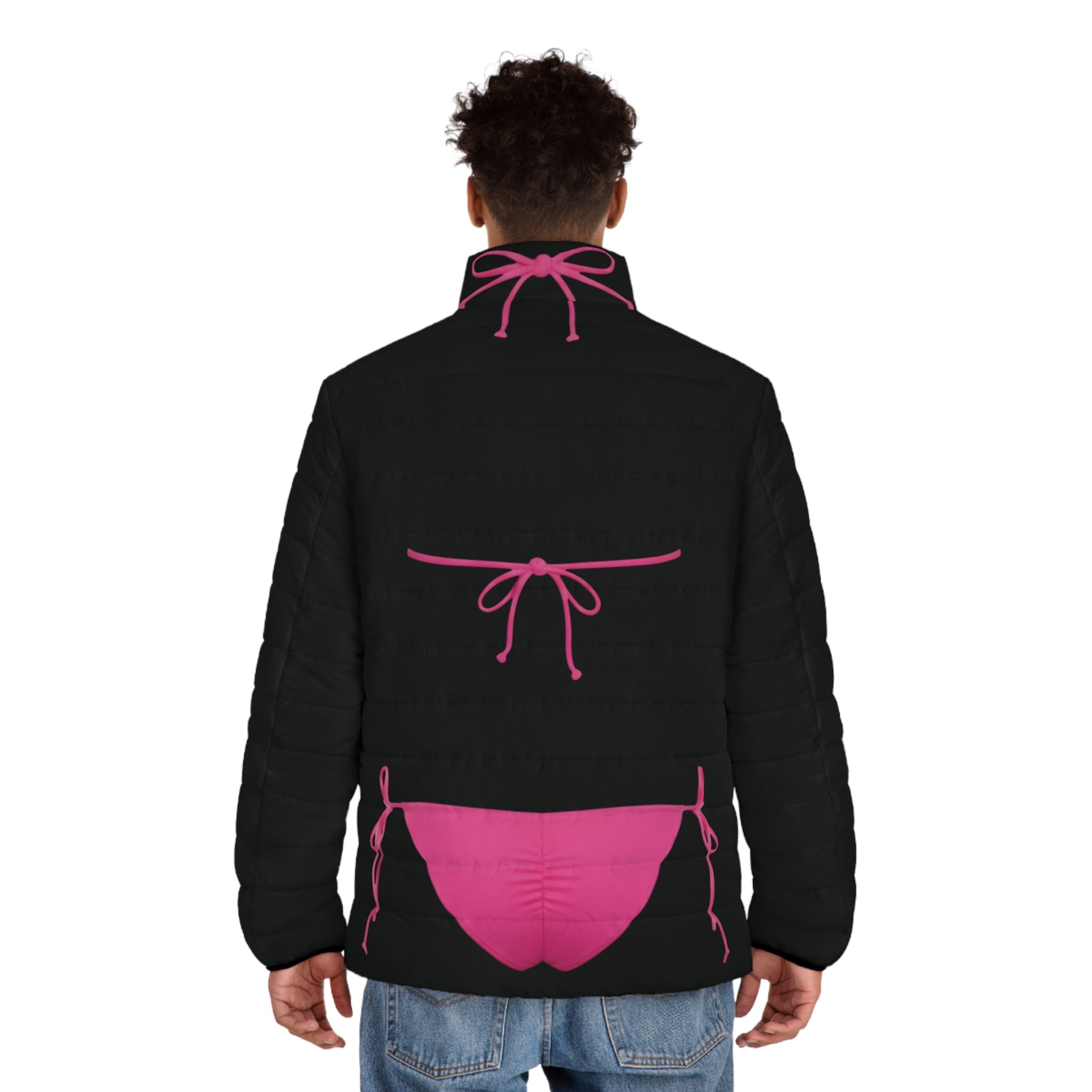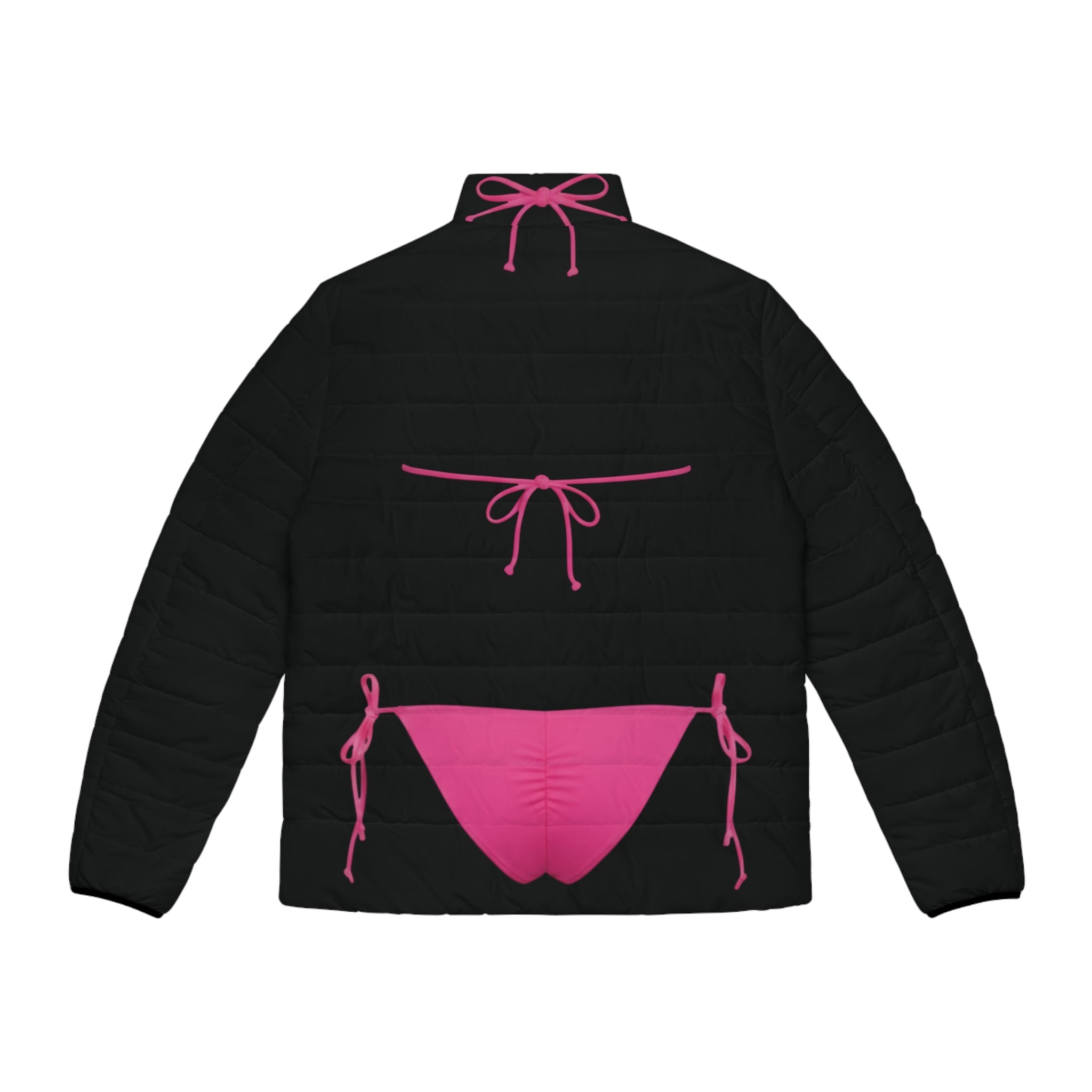 pink bikini black puffer